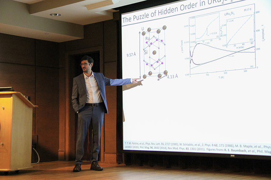 Quantum materials are the latest example of humanity’s search to develop better materials that will impact society, said MagLab researcher Ryan Baumbach, who spoke about his research into uranium-based materials. Consider steel, a well-established technology that is still being pushed forward today by scientists. Without the steel beams that make high rises possible, modern cities would look very different and couldn’t be organized in the ways they are now.