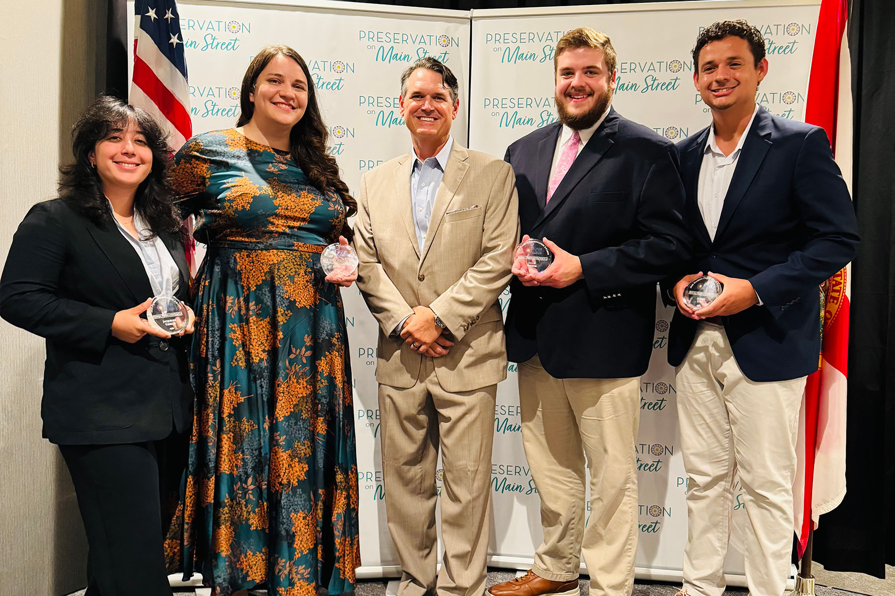 Conti has mentored many students, including four history master’s graduates — Hope Evans, Alessio Luna, Jacqueline Vanegas and Jacob Winton — who each received Historic Preservation Scholar Awards from the Florida Trust for Historic Preservation at the July conference.
