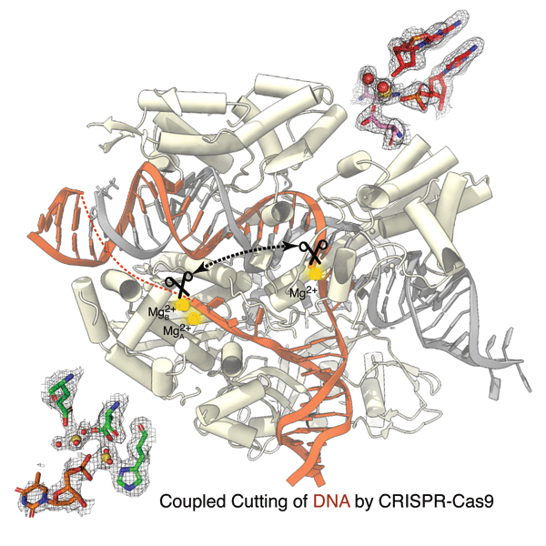 Scientists have known that magnesium plays a role in this process, but it was unclear exactly how, and no one had been able to capture time-lapsed images of the process up close. By leveraging a slower version of CRISPR-Cas9, this research showed that magnesium ions in the center of the catalysis reaction hold a key to the near-simultaneous cutting.