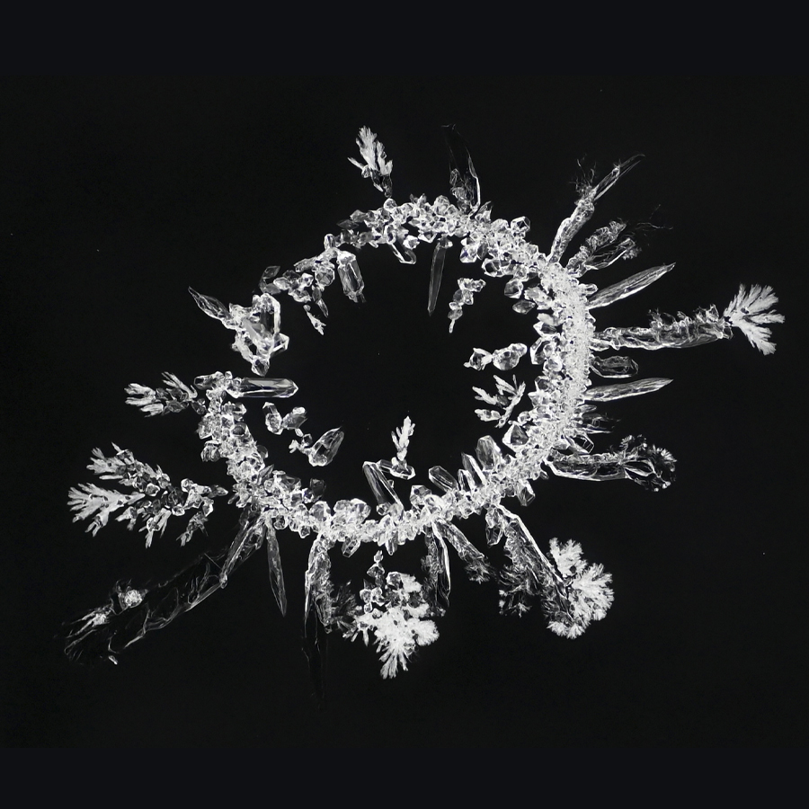 Imagine zooming in on a dried drop of salt solution — each pattern a unique masterpiece, reminiscent of abstract art, yet no larger than the size of a penny.