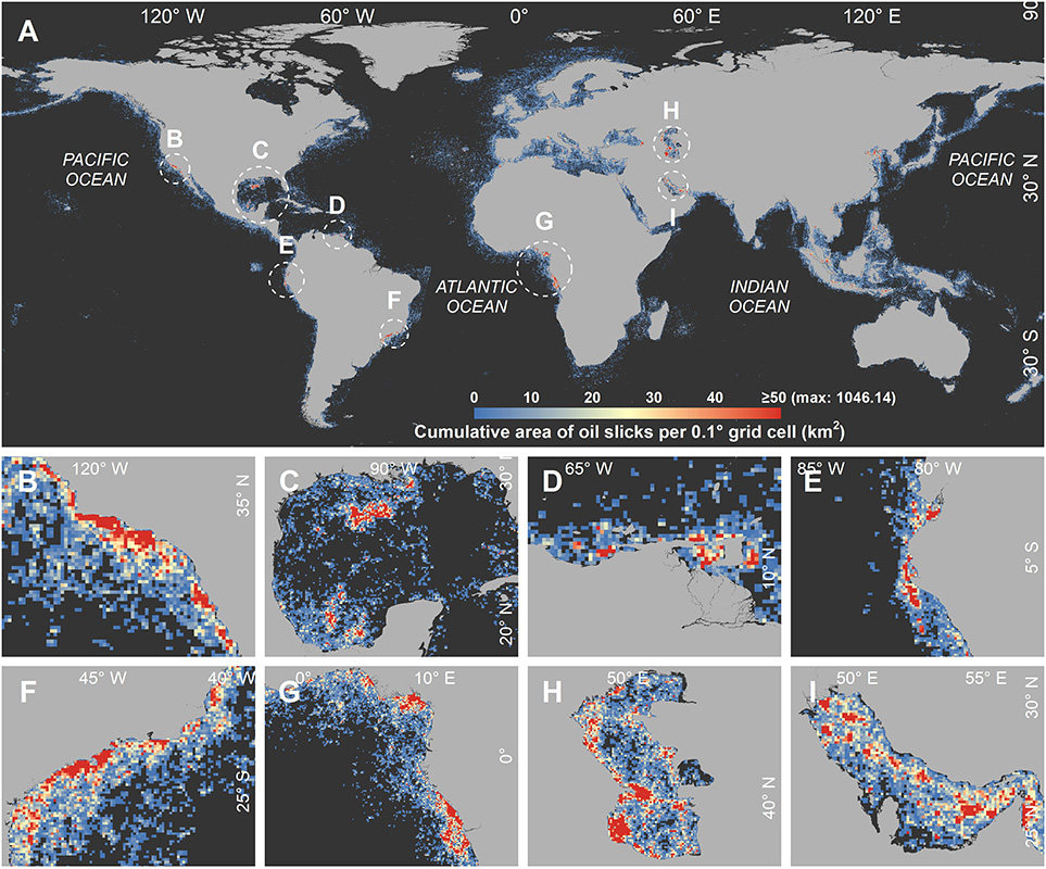 These short-lived patches of oil are continuously being moved around by wind and currents, while waves are breaking them apart, making investigations challenging. To find and analyze them, the research team used artificial intelligence to examine more than 560,000 satellite radar images collected between 2014 and 2019. That allowed them to determine the location, extent and probable sources of chronic oil pollution.