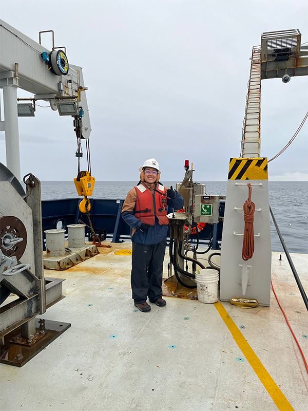 “So many things can happen during a day at sea; our work runs the gamut from cold, muddy, exhausting work on the deck to carefully pipetting small volumes of clean water at a lab table,” Herbert said. “We work 12-hour shifts, and the midnight team always starts with a crossover meeting with the day team in which they fill us in on what happened while we slept, maximizing our time on the ship and letting us get double the work done.”