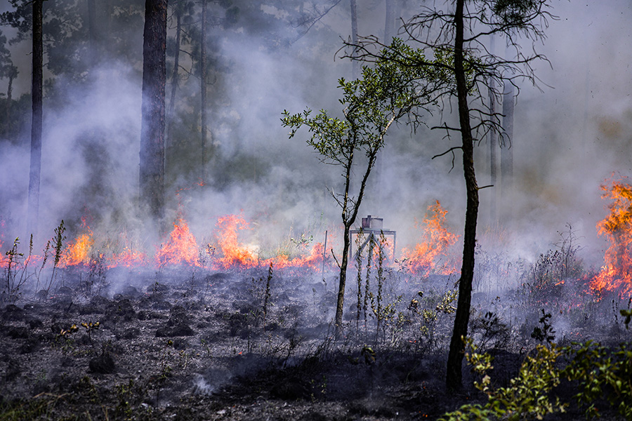As lightning strikes dry brush and fires begin to blaze, miles of forest are suddenly overtaken by a sinister orange glow. Firefighters work to control the blaze on the ground while aerial tankers buzz overhead, dropping thousands of gallons of water from above in an effort to quench the flames.